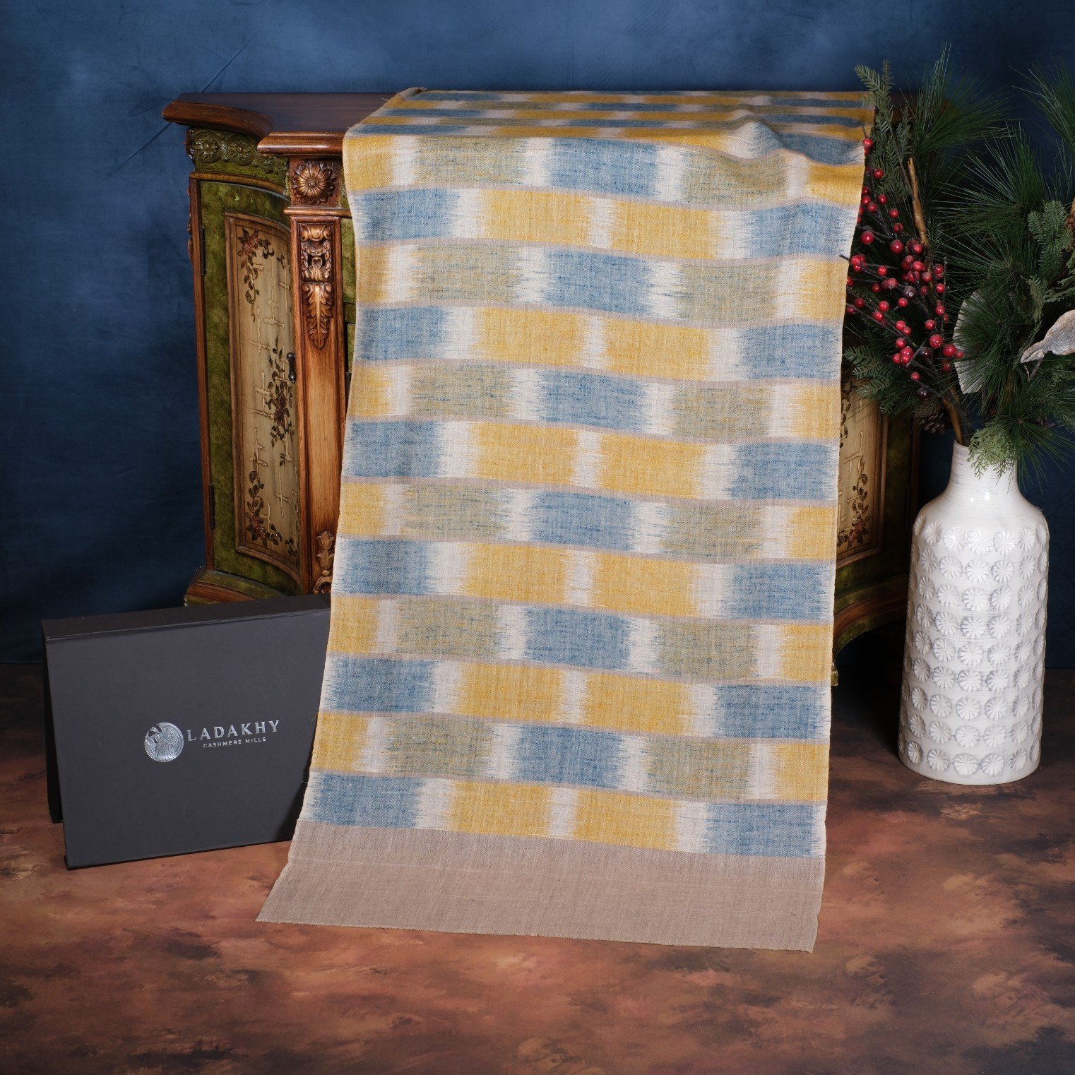 100% cashmere for warmth and softness.